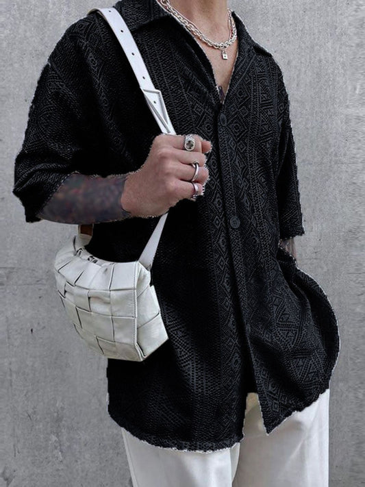 Men's Full Size Lace Half Sleeve Button Down Shirt Plus Size
