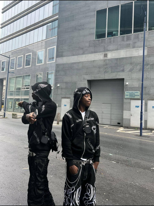 Men's Spider Web Rhinestones Zip-Up Hoodie